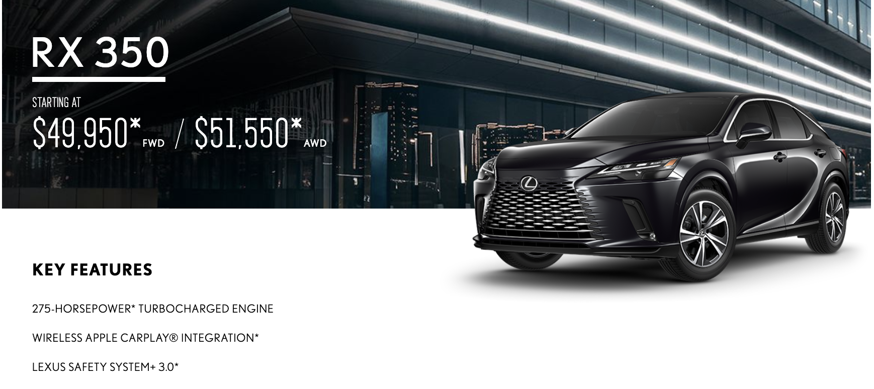 Lexus Rx350 For Sale 2024 – to replace my certified Rx350 (2016). While I had no issues with the ’16., I wanted to upgrade to a model with all the new safety features and android auto. The Lexus certified program is the best . These estimates do not include tax, title, registration fees, lien fees, or any other fees that may be imposed by a governmental agency in connection with the sale and financing of the vehicle. .